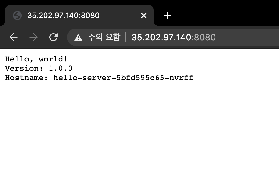 [EXTERNAL-IP]:[port] 로 접속하면 다음과 같이 애플리케이션이 배포된 것을 확인할 수 있습니다.