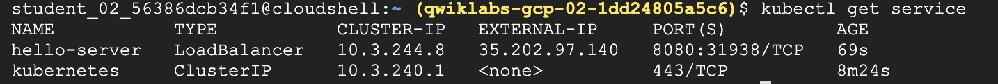 콘솔창에 출력된 정보로 인터넷으로 접속할 수 있는 EXTERNAL-IP 주소를 알 수 있습니다.