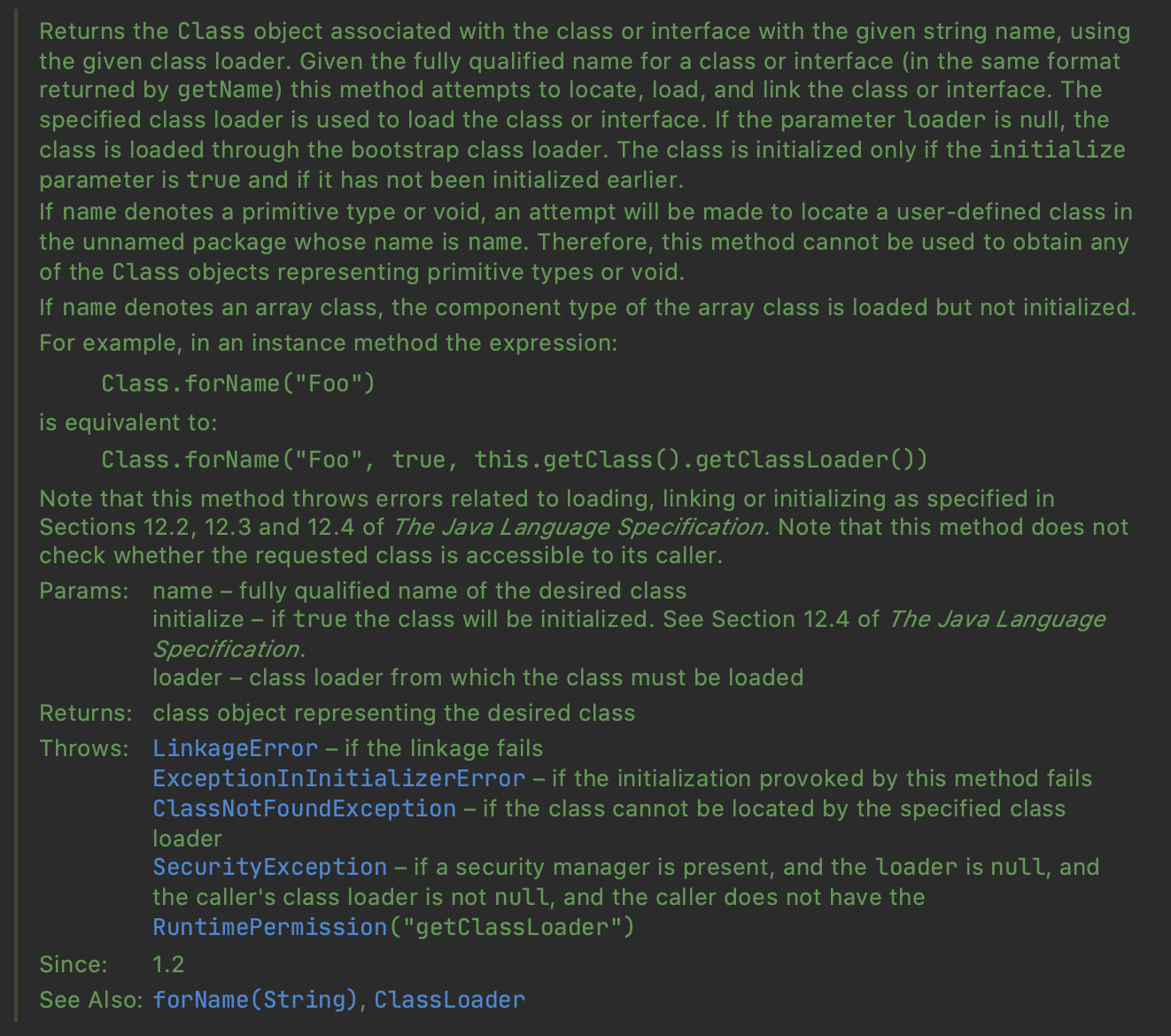 Java 11 기준 forName(String className)의 JavaDocs를 읽어보았습니다.